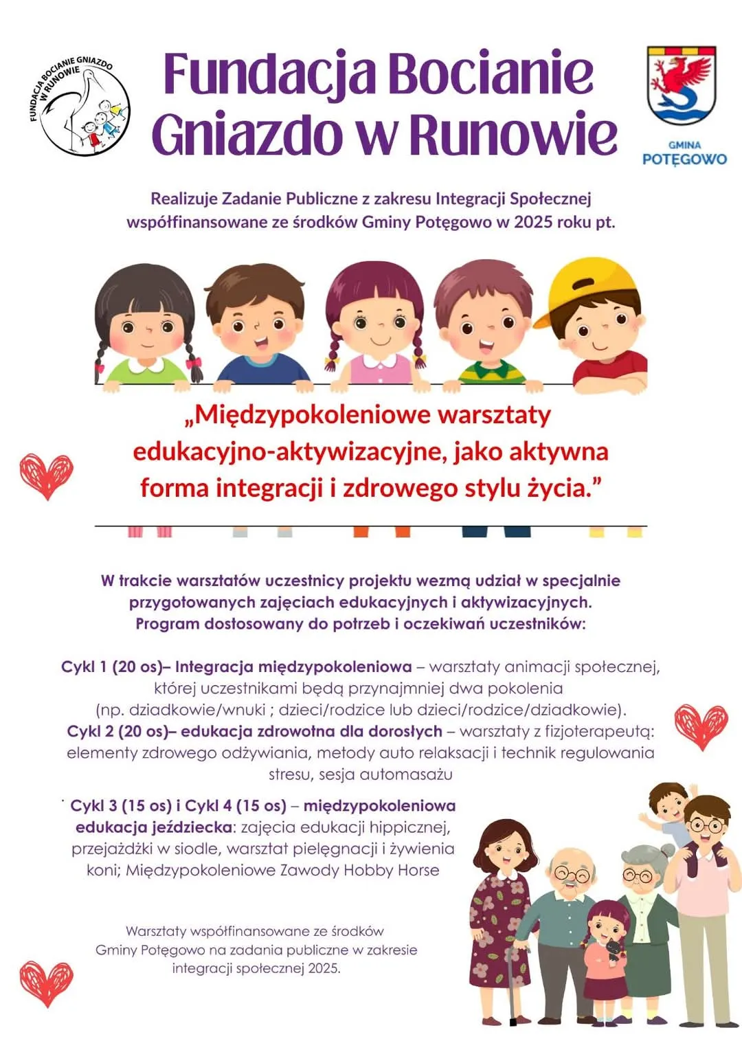 Fundacja Bocianie Gniazdo w Runowie realizuje w 2025 roku zadanie publiczne z zakresu integracji społecznej, współfinansowane ze środków Gminy Potęgowo.